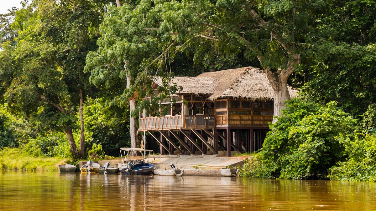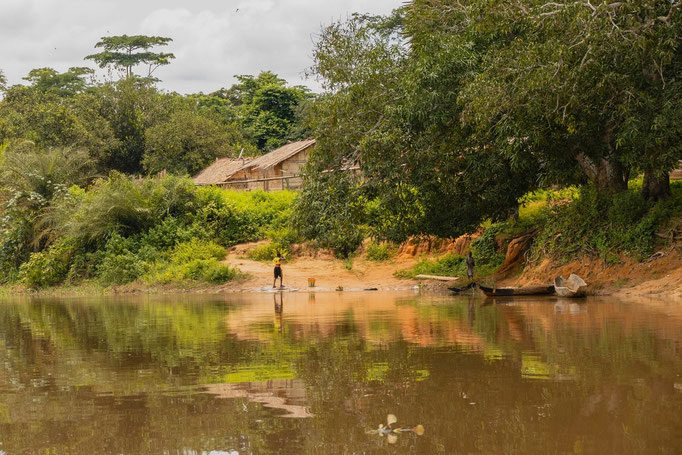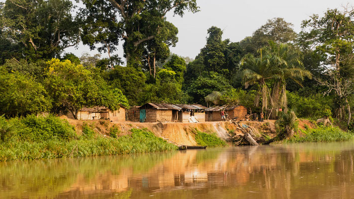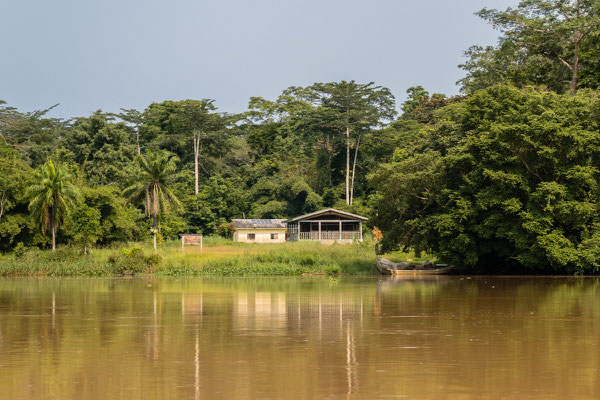Nach sieben Stunden erreichten wir das Ziel unserer Bootstour, die Doli Loge im Dzanga-Sangha-Schutzgebiet.