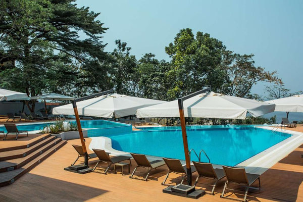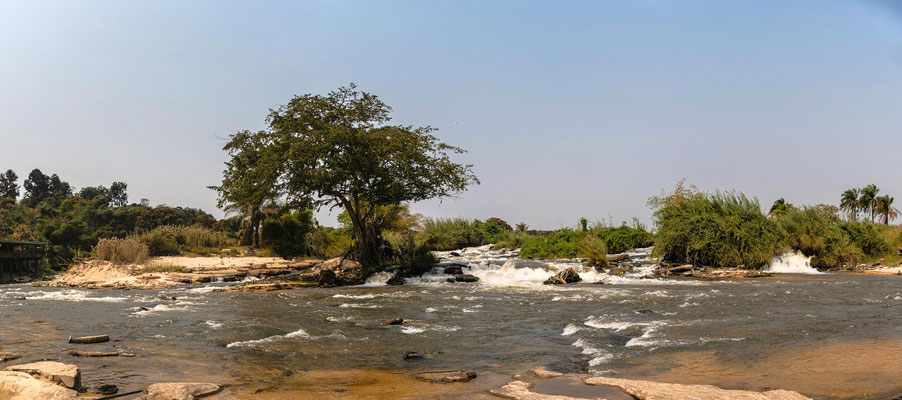 Am Flughafen Brazzaville wurden wir von Thorsten und einem unserer Guides von Ducret empfangen. Wir tauschten noch etwas Geld bei Western Union am Flughafen. Dann ging es zum Pefaco Hotel Maya Maya, wo wir eigentlich übernachten sollten. Wir stellen unser Gepäck ab, lernten unsere ersten Mitreisenden kennen und fuhren per Taxis zu den Stromschnellen am Stadtrand von Brazzaville.