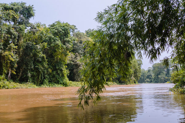 Auf beiden Seiten reicht der Regenwald bis an die Ufer des Sangha.