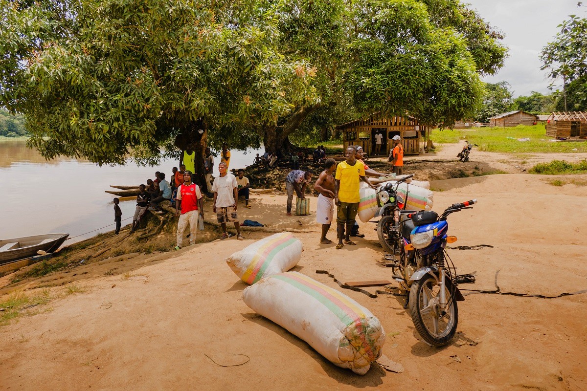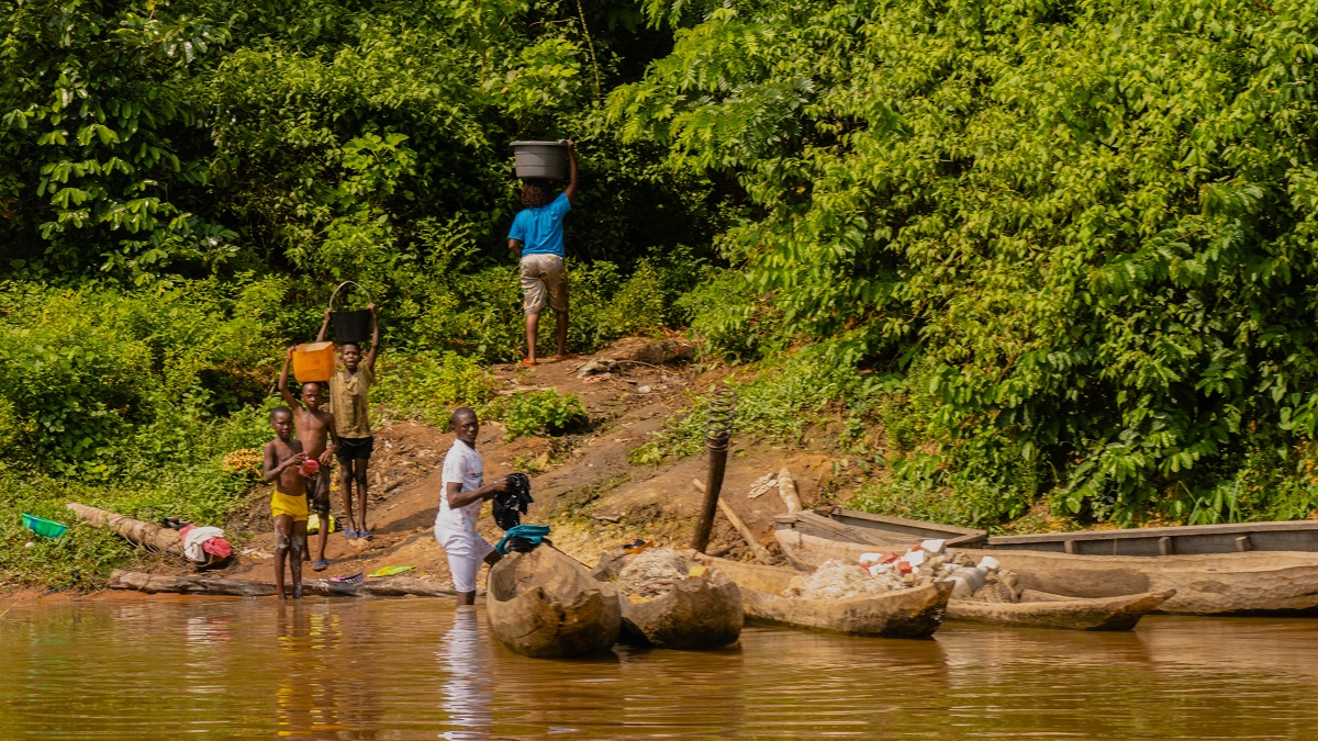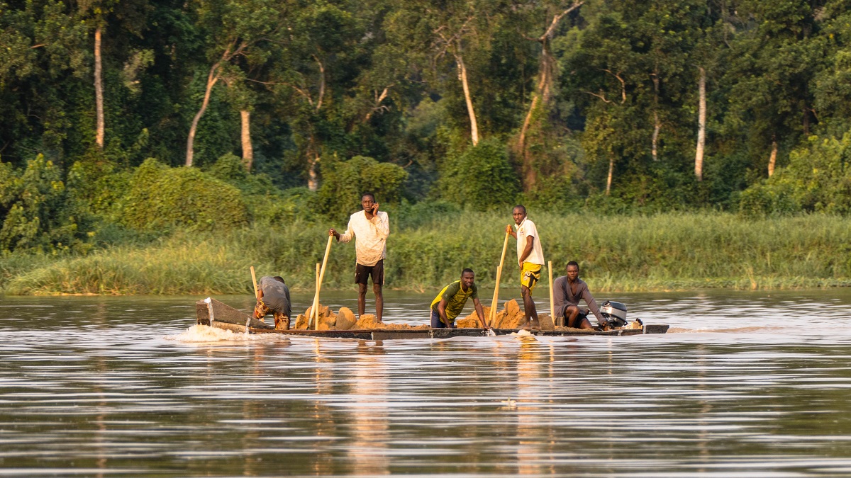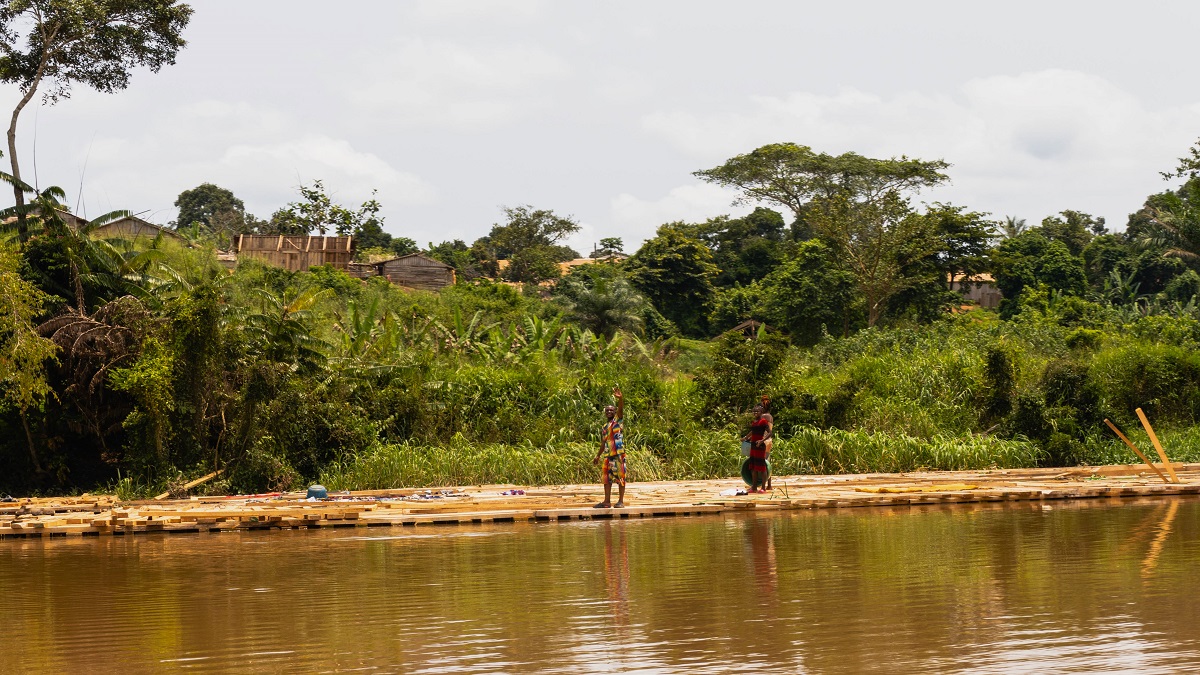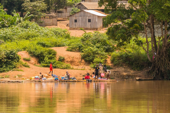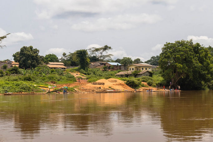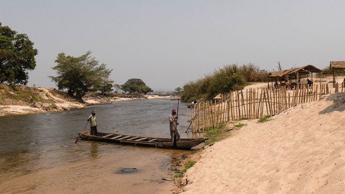 Flussaufwärts ist die linke Seite des Sangha Kamerun, rechts die Republik Kongo.