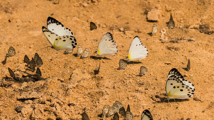 Es ist die Zeit, wo Raupen gesammelt werden. Schmetterlinge schwirrten herum.