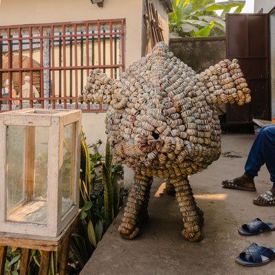 Der berühmte Elefant aus Konservendosen im Club femmes artistes Peintres et sculpteurs.
