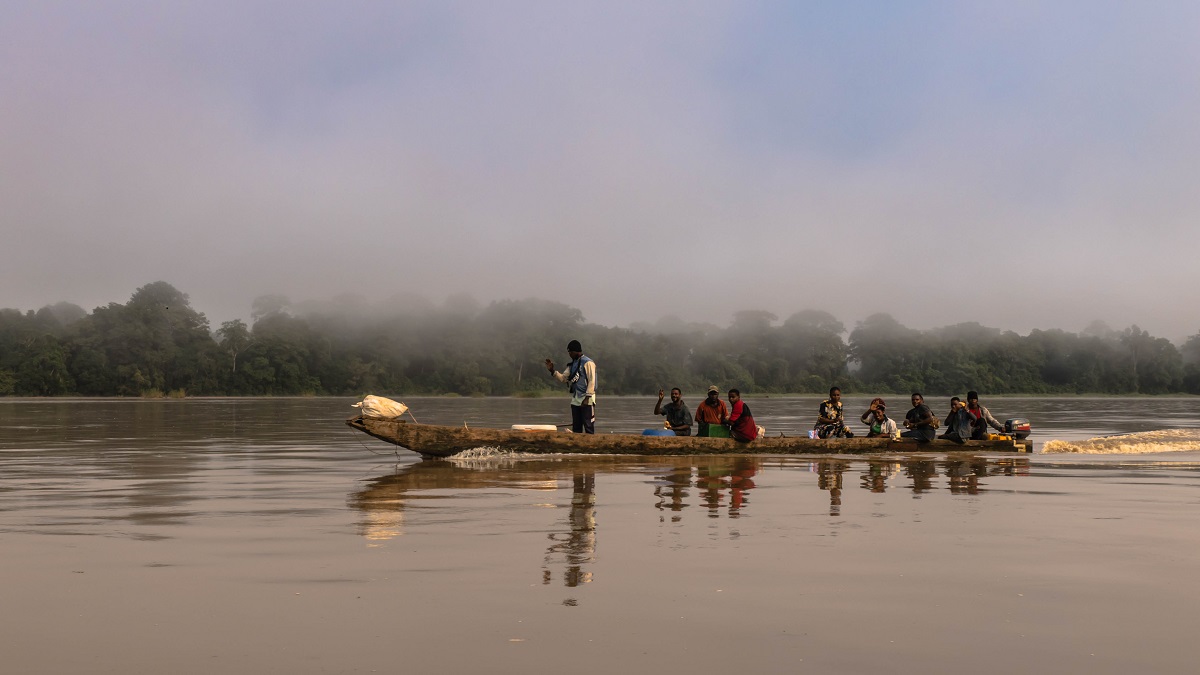 Mit zwei Speedboats begann unsere Reise auf dem Sangha Fluss kurz nach 7 Uhr. Ca. 185 km mussten wir so zurücklegen, um in das Dzanga-Sangha-Schutzgebiet in der Zentralafrikanischen Republik zu gelangen.