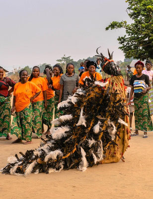 Kebe Kebe stammt ursprünglich aus der Kuyu-, Mbochi- und Makua-Kultur der Republik Kongo und verbindet Tanz, Puppenspiel, Ritual und Akrobatik zu einer atemberaubenden Darbietung von Bewegung und Bedeutung. Tänzer, in hoch aufragende Bastkostüme gehüllt, wirbeln und springen mit unglaublicher Geschwindigkeit, während ihre puppenartigen Köpfe wie fliegende Geister über ihnen kreisen. Einst ein Initiationsritus, hat sich das Kebe Kebe zu einem kulturellen Fest entwickelt, das bei Festivals und öffentlichen Versammlungen gefeiert wird. Jede Aufführung erzählt eine Geschichte - von der Schöpfung, von den Vorfahren, von Stärke und Schönheit. Sie zeigt gleichzeitig die unglaubliche Kunstfertigkeit derjenigen, die die kunstvollen Kopfbedeckungen formen und jahrelang trainieren, um die anspruchsvolle Choreografie zu meistern. Jede Drehung, jeder Sprung, jede zitternde Bewegung ist reich an Symbolik und erinnert uns daran, dass Tanzen nicht nur Unterhaltung ist, sondern eine lebendige Brücke zwischen Vergangenheit und Gegenwart. Es ist ein Tanz des Stolzes, ein Tanz der Macht, ein Tanz des Volkes.