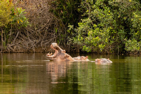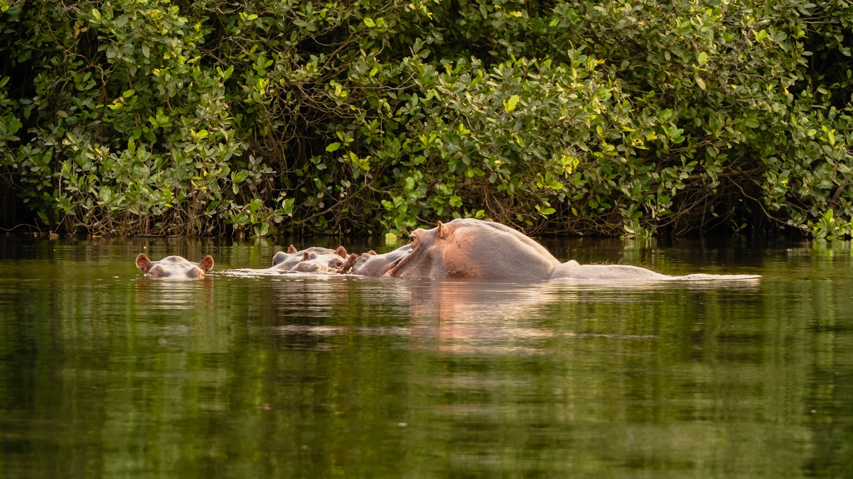 Eine kleine Hippofamilie - Konkurrenten hatte der Bulle nicht, zeigte uns jedoch immer wieder seine Zähnchen.