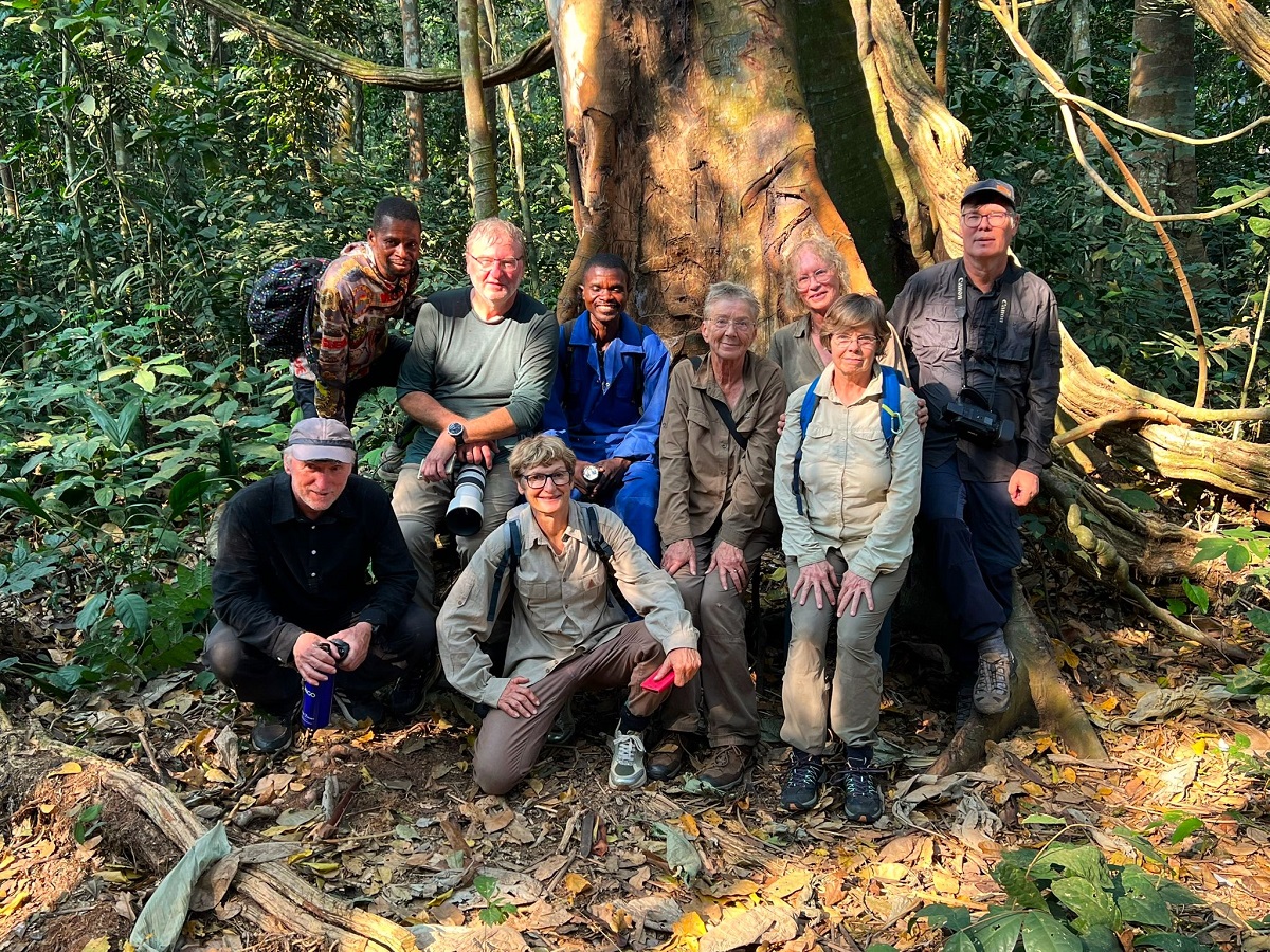 Abschiedsfoto unserer kleinen Tracking Gruppe im Bonobo Wald mit unseren Fährtenlesern.