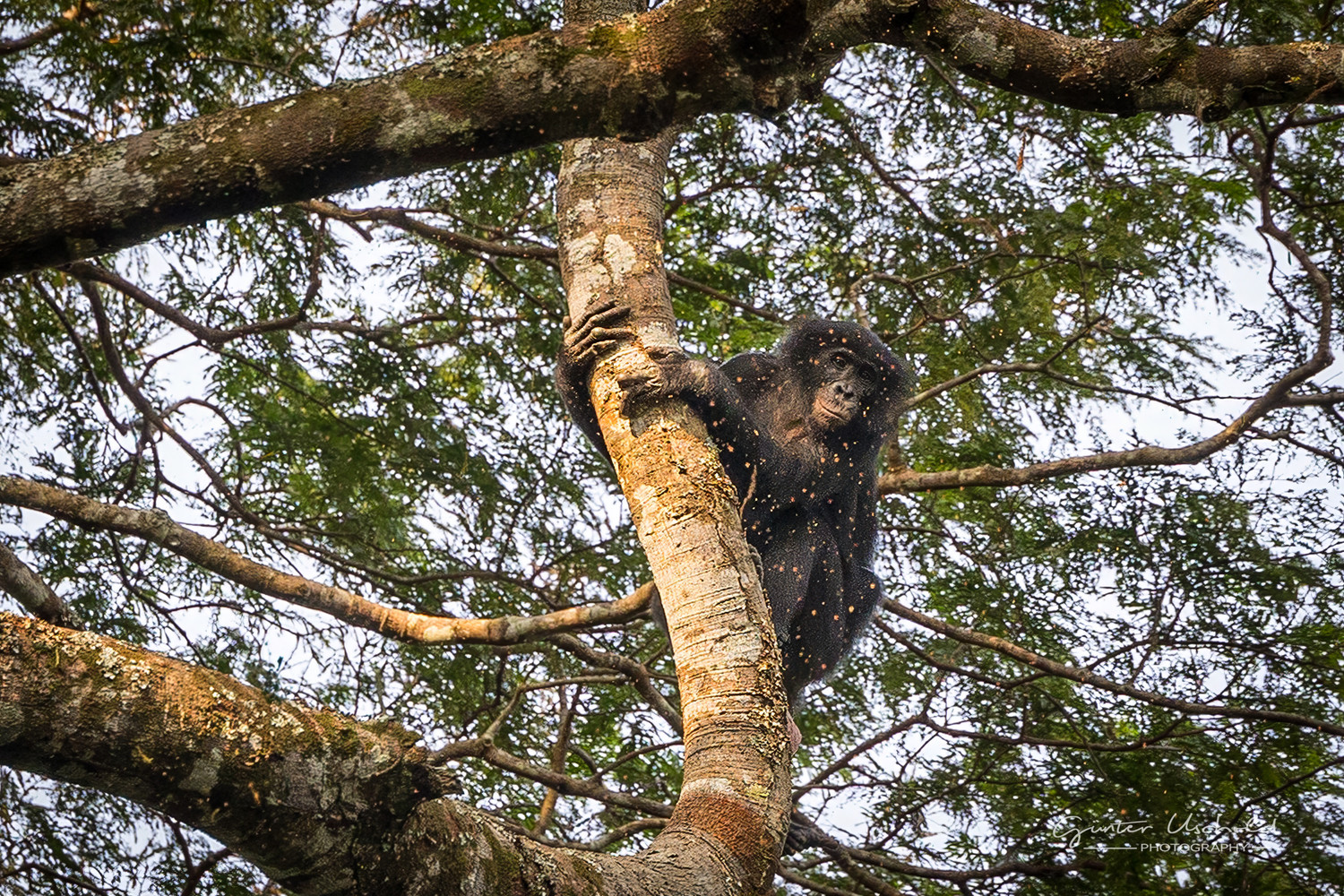 Die Lichtverhältnisse und die hohen Bäume, auf denen die Bonobos unterwegs waren, überforderten meine Kamera total. Auch Günter hatte zu Beginn schwer zu kämpfen, aber als die Sonne durch das Blätterdach schaute, sind ihm wunderschöne Fotos gelungen. Danke, dass ich einige hier zeigen darf.