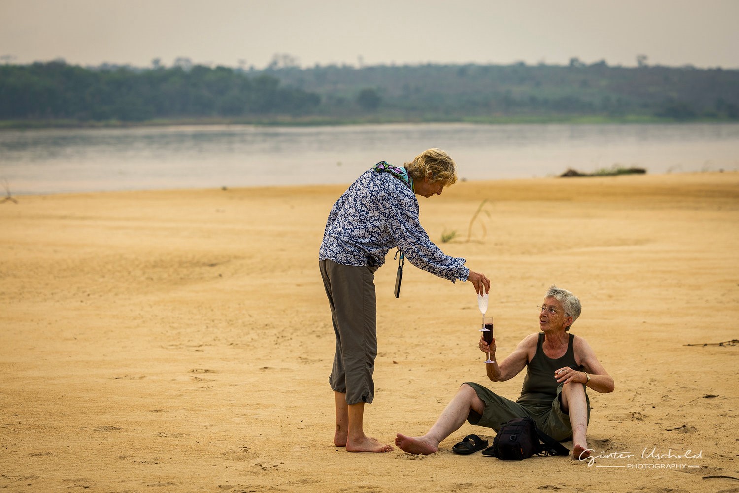 Oh, was war denn das? Überraschung - Sundowner am Sandstrand auf einer Insel im Kongo © Günter Uschold