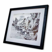 Wir durften uns noch einige schwarz/ weiss Federzeichnungen von Gerly Mpo anschauen, die mir persönlich durch ihre reale Darstellung von Szenen aus dem Leben der Kongolesen sehr gut gefielen, doch es waren alles Auftragsarbeiten.