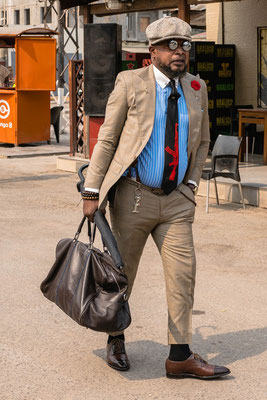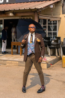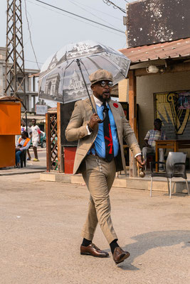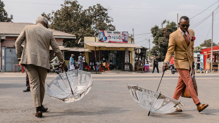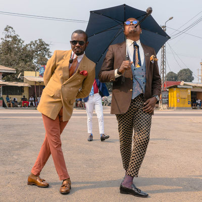 Die meisten Sapeurs gehen ganz normalen Jobs als Taxifahrer, Schneider oder Gärtner nach, doch sobald sie ausgeruht sind, verwandeln sie sich in sorglose Dandys. Wenn sie durch die Straßen der Stadt schlendern, werden sie wie Rockstars behandelt, bringen „Lebensfreude“ in ihre Gemeinden und trotzen den tristen Umständen ihres Alltags. In eleganten Anzügen von Luxusmarken, ausgestattet mit Hüten, Krawatten, kunstvollen Regenschirmen, bunten Westen und Seidenstrümpfen, wollen Sapeurs gesehen und bewundert werden und üben sich daher in der Kunst, sich gut zu kleiden („bien se saper“ auf Französisch). Geld für schicke Kleidung auszugeben, mag surreal erscheinen, wenn fast die Hälfte der kongolesischen Bevölkerung in Armut lebt. Doch die Sape-Bewegung will mehr erreichen, als nur die Moral zu stärken, wenn ihre Mitglieder auf der Straße stolzieren. In den letzten Jahrzehnten fungierte sie als eine Form des kolonialen Widerstands, des sozialen Aktivismus und des friedlichen Protests und dehnte ihre Reichweite bis in die Nachbarländer aus.