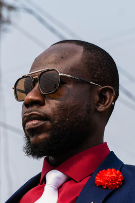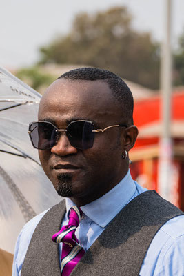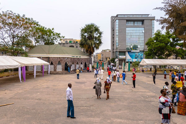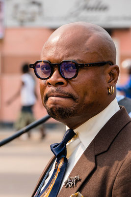 Zum Lunch kehrten wir noch einmal auf die Princesse Ngalessa zurück. Dann hiess es endgültig Goodbye! sagen zur Crew. Eigentlich sollte eine Gruppe der Sapeurs zu uns auf das Schiff kommen. Zwei Tage zuvor hatte mich Thorsten gefragt, was wir denn nun an unserem zusätzlichen Tag in Brazzaville unternehmen wollen. Ein Tagesausflug zu den Loufoulakari Wasserfällen war leider nicht möglich, da durch Bauarbeiten das Gebiet vorübergehend für Besucher gesperrt war. So planten wir einen Stadtbummel und eine Privataudienz mit den Sapeurs, denn die Atmosphäre an Deck passte für uns nicht so richtig zur Performanz der Herren. Nun hatte man für die ganze Gruppe umgeplant und wir fuhren alle in den Stadtteil Bacongo in die Avenue Matsoua. War es ein Zufall?