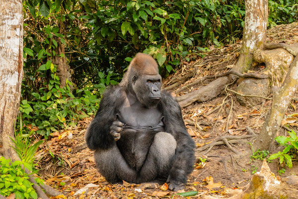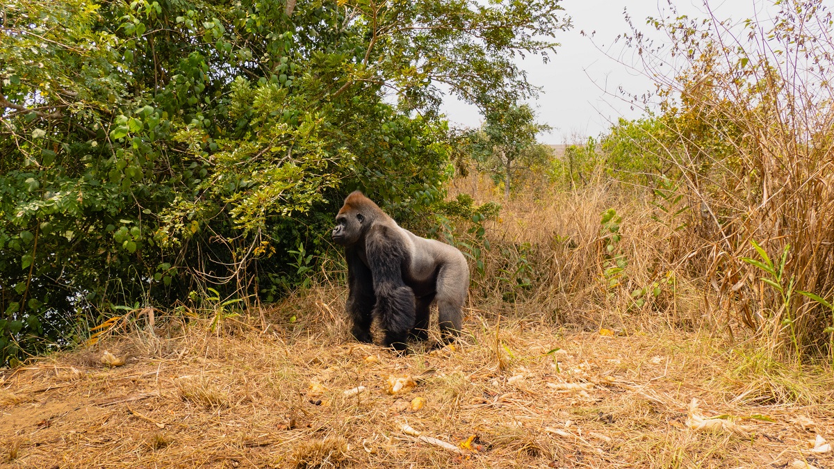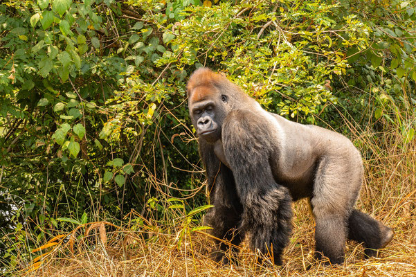 Unser erster Silberrücken - wir konnten ihn am Ufer vom Boot aus beobachten.