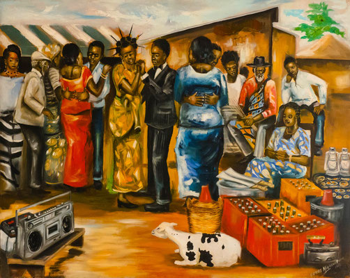 Ein eigener Stil bildete sich heraus, den man Miké-Stil nannte, nach dem gleichlautenden Wort, das in Lingala „klein“ bedeutet. Zusammengesetzt aus kleinen Figuren - schwarz auf hellem oder farbigem Hintergrund oder farbig auf schwarz - mit schematischen und schlanken Formen. Es ist ein Stil, der viel Raum für Abstraktionen lässt. Auch heute gibt es noch solche Werke - wunderschön.