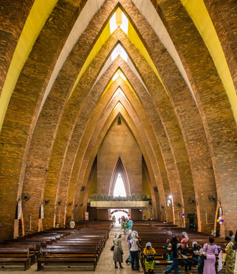 Der ersten Spatenstich für die Basilika erfolgte 1943. Geldmangel verzögerte immer wieder den Baufortschritt. Am 01.11.1949, das Kirchenschiff war bereits mit seinem Gewölbe bedeckt, wurde dieser erste Teil mit einer Messe geweiht. Die Arbeiten dauerten noch einige Jahre, doch aus Geldmangel blieb der Turm unvollendet. Die Basilika wurde während der Bürgerkriege der 1990er Jahre beschädigt. Die Restaurierung wurden Ende der 2000er Jahre durchgeführt. Der ursprünglich vom Architekten geplante Turm aus Metall und Glas wurde von einer italienischen Firma errichtet und mit neuen Glocken bestückt.