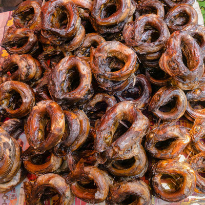 Es gab so viele Fotomotive. Manche Händler lehnten Fotos komplett ab, auch wenn man höflich fragte. Bei anderen durften die Auslagen fotografiert werden, aber bitte, sie wollten nicht mit auf die Bilder. Das mussten wir halt weitestgehend respektieren. Dieser Marktbesuch war ein echtes Erlebnis - malerisch und chaotisch zugleich. Keiner hatte uns in irgend einer Weise bedrängt. Wir waren die einzigen Europäer - niemanden störte es.