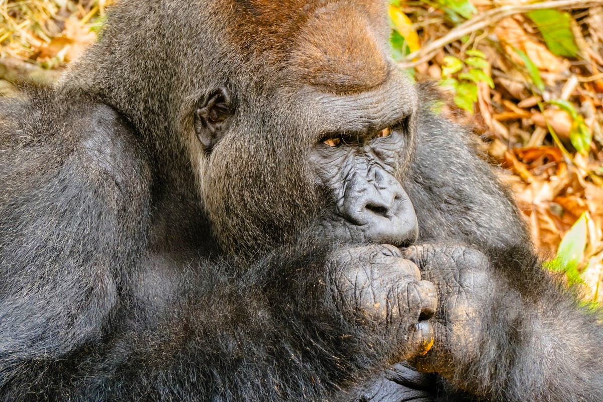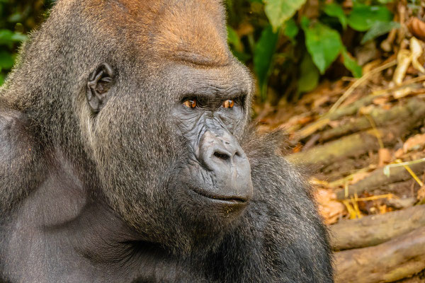 Auch dieser Flachlandgorilla lebt momentan allein in seinem kleinen Reich und wird täglich gefüttert.