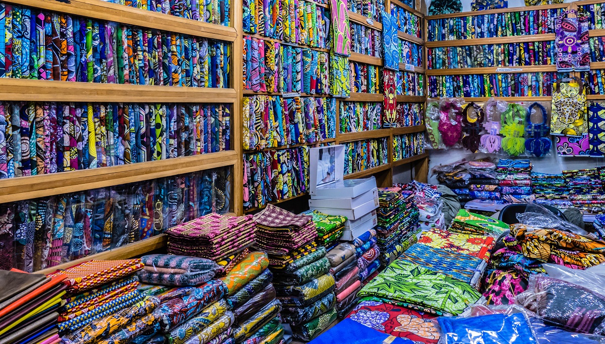Hier wurden unter anderem Stoffe von Vlisco, ein seit 1846 existierendes holländisches Unternehmen, das für seine einzigartigen bedruckten Stoffe in West- und Zentralafrika sehr bekannt ist, angeboten. Heute werden sie zwar maschinell, aber basierend auf der indonesischen Batiktechnik auf Wachsbasis - hauptsächlich in der Elfenbeinküste und in Ghana - produziert. Auch sie kann man online kaufen.