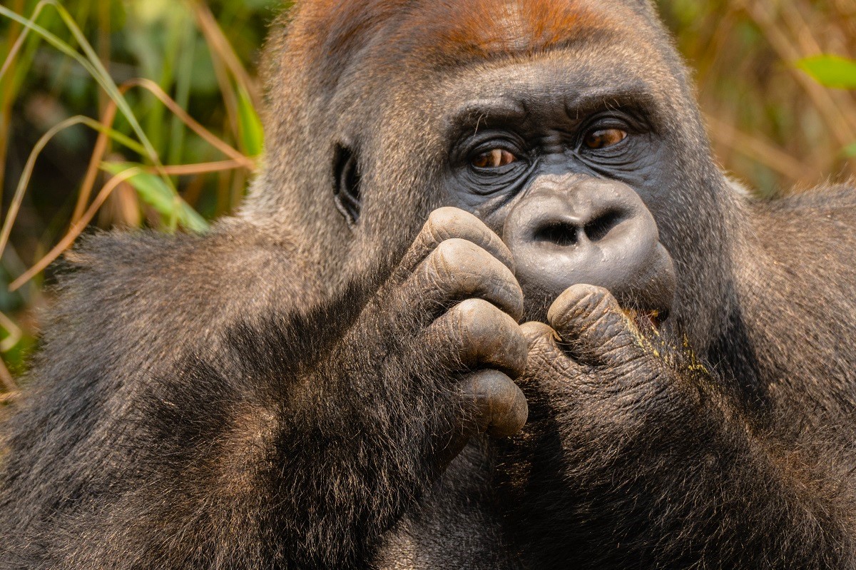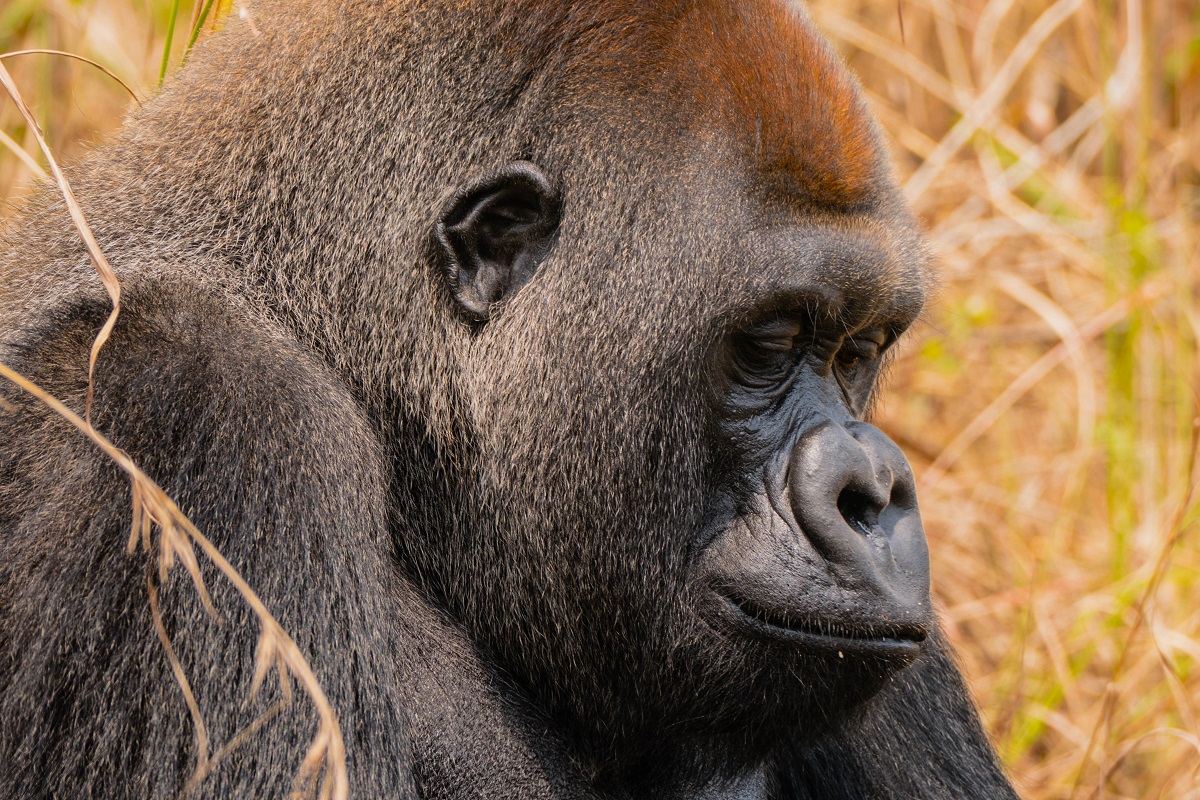 Dieser Westliche Flachlandgorilla wurde 2007 im Howletts Wild Animal Park in Kent geboren und 2021 im Rahmen des "Back to The Wild" Programms der Aspinall Foundation nach Lésio Louna gebracht. Nun lebt er auf einer kleinen Insel. Eine wirkliche Auswilderung wird es für ihn wohl nicht mehr geben.