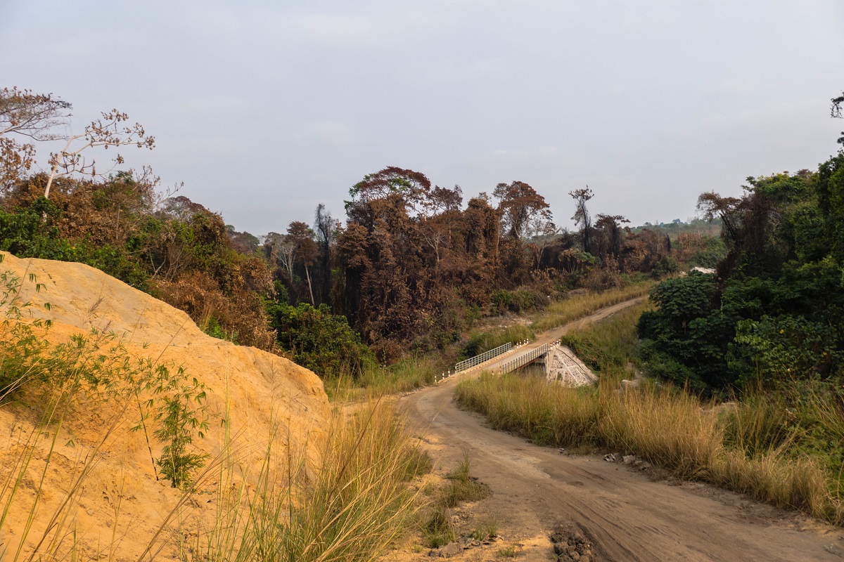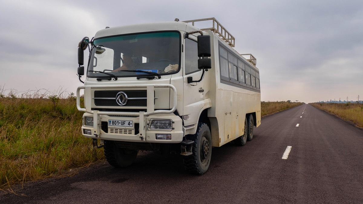 Eigentlich sollten wir ab hier mit drei kleinen Allradfahrzeugen weiter fahren, doch es warteten nur zwei am Abzweig zum Lèsio Louna Reserve. Was nun - es wurde diskutiert und man entschied, dass wir mit unserem grossen Bus weiter fahren. Der erste Teil der Piste war etwas eng, dann war alles offenes Gelände.