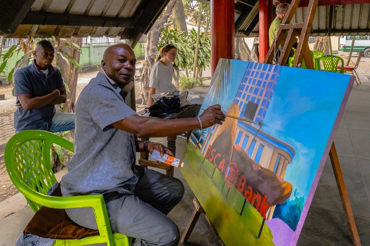 Gerly Mpo bei der Arbeit, er ist einer der bekannten Maler an der Poto-Poto Malschule